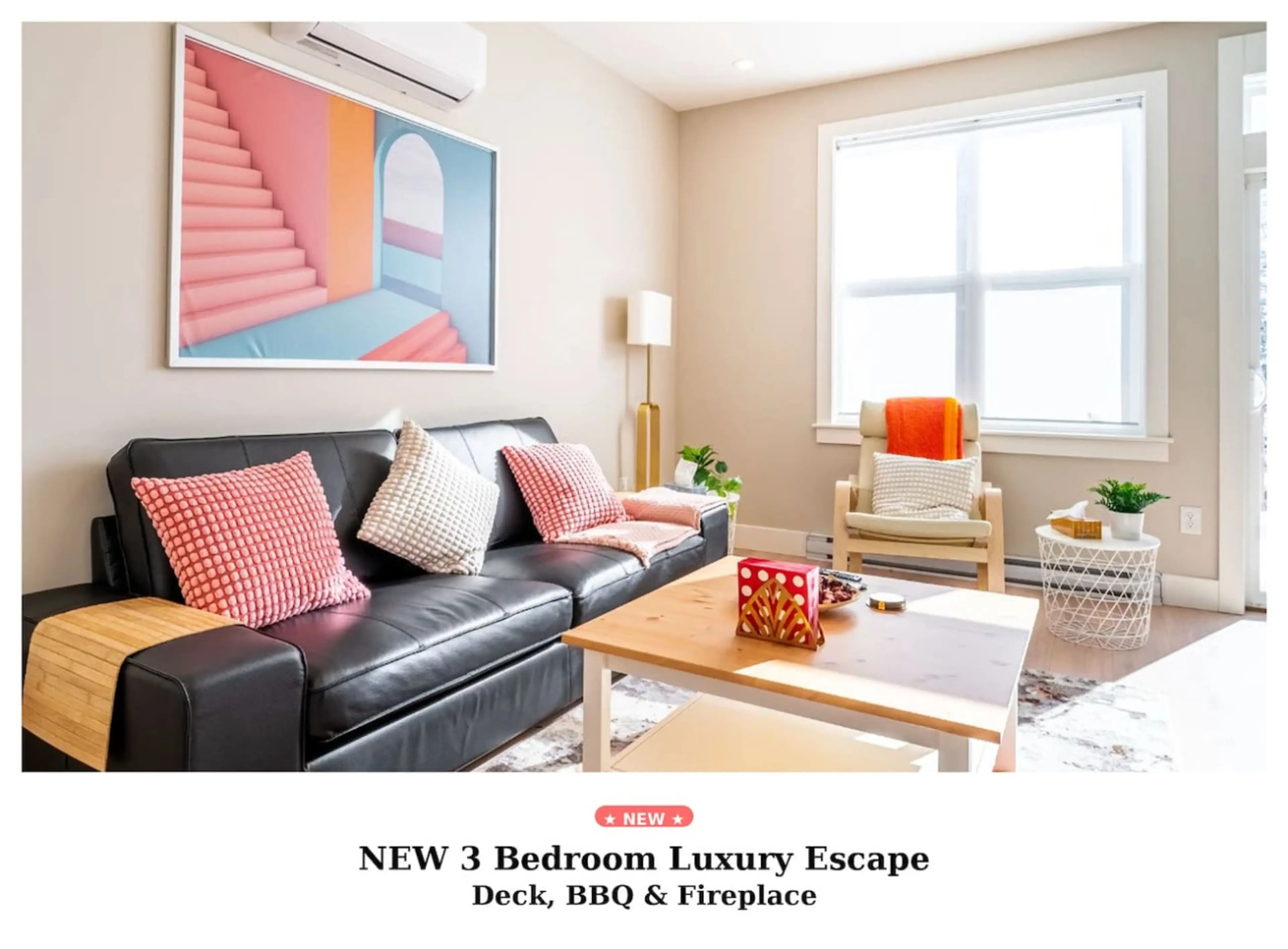 NEW 3 Bedroom Luxury Escape- Deck, BBQ & Fireplace