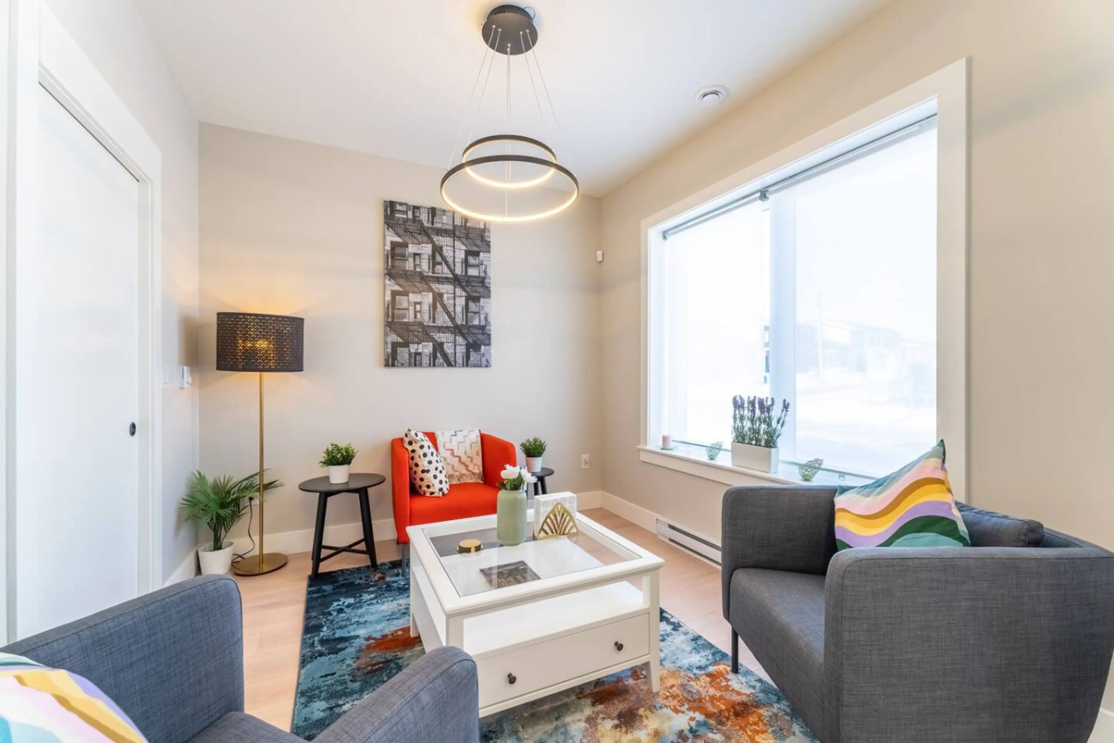 Brand-new home sleeps upto 7! Primary suite with king bed, en-suite & walk-in closet. Two other bedrooms, three bathrooms, two living rooms, a world-class kitchen, a 75" Smart TV, high-speed Wi-Fi, a washer/dryer, and both floors are air-conditioned. Private deck & backyard with trail access. Steps ...